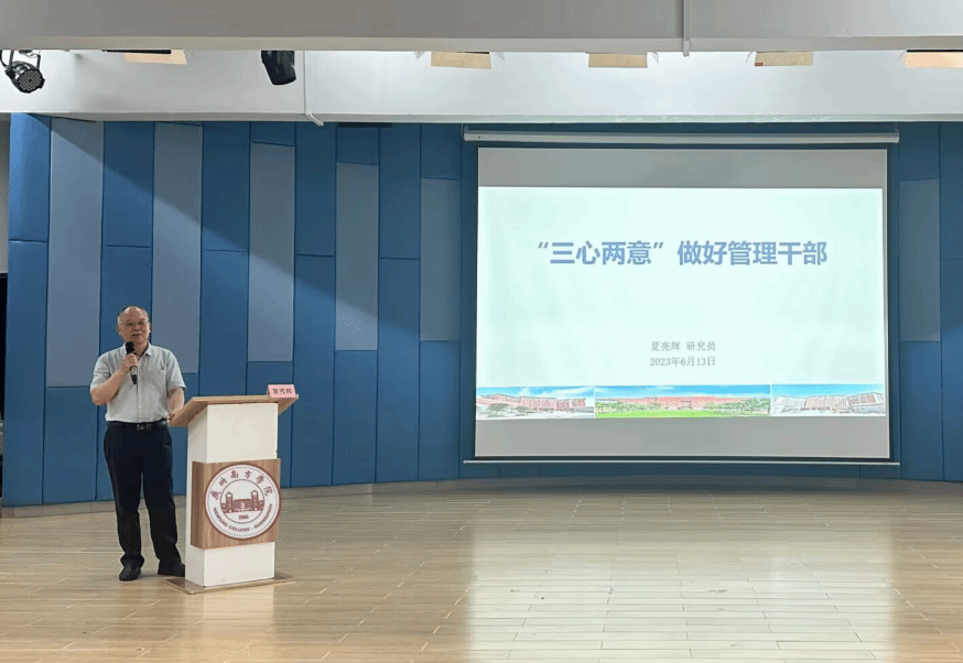 夏亮辉副校长首先以“如何做好管理干部”作为切入点,阐释了要做好管理干部,必须“三心两意”。“两意”即应具备大局意识、服务意识。学校职能部门工作有分工,但应坚持全校工作一盘棋,我们做每一件工作都应首先从有利于学校发展的角度考虑。在工作中,要有良好的服务精神、端正的服务态度、合适的服务方式、精准的服务内容。“三心”即用心做好工作、用心调研学习、用心沟通协调。